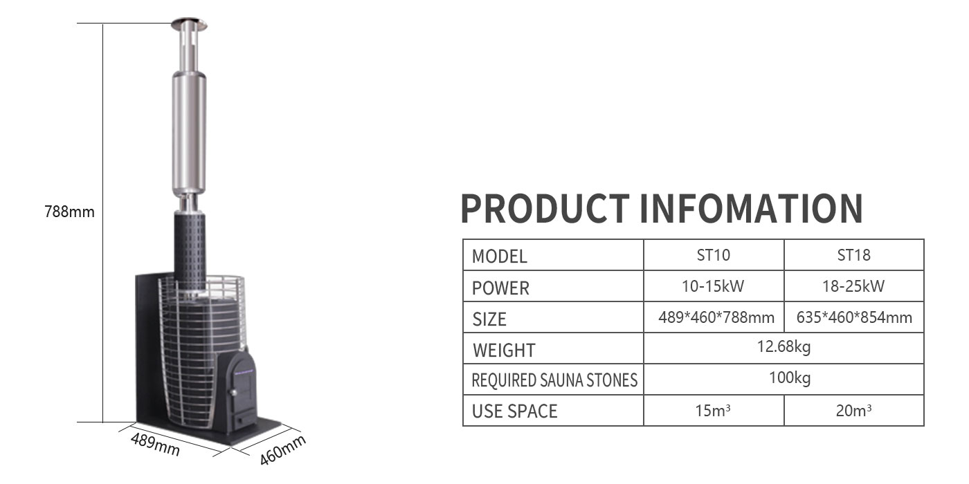 The main body of this sauna stove is made of thick steel, ensuring excellent heat conduction and durable quality. Its unique sauna stone enclosure design is made of high-quality solid stainless steel, which not only effectively protects the sauna stones from burns but also evenly and efficiently transfers the heat of the firewood to every inch of the sauna room, providing a warm and comfortable sauna experience.